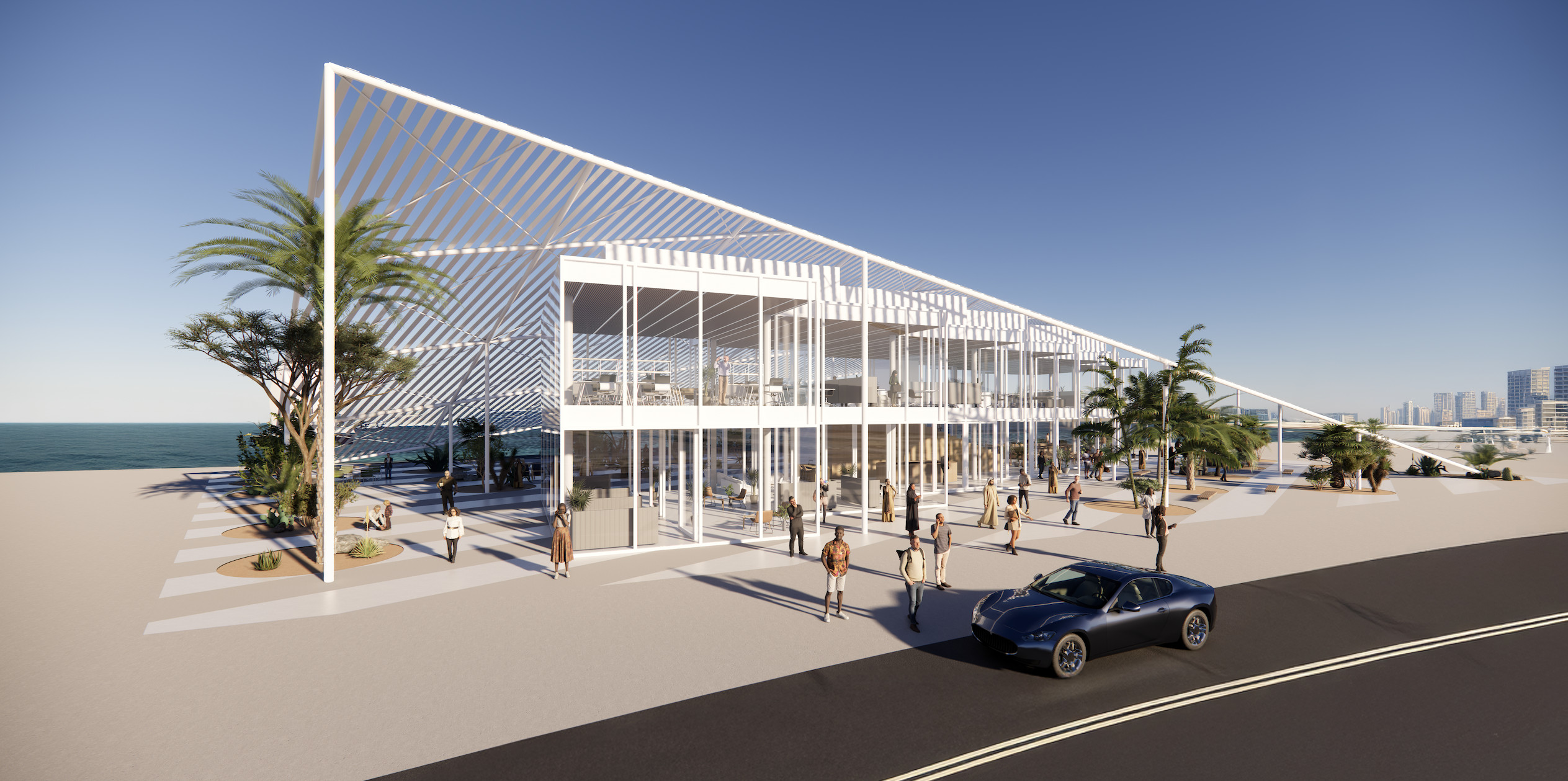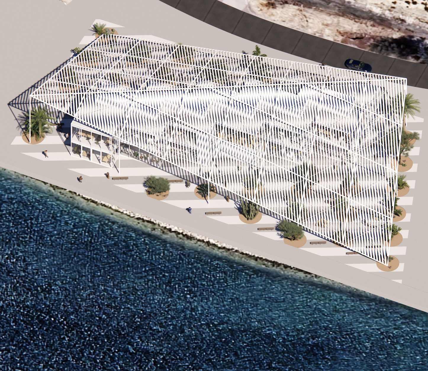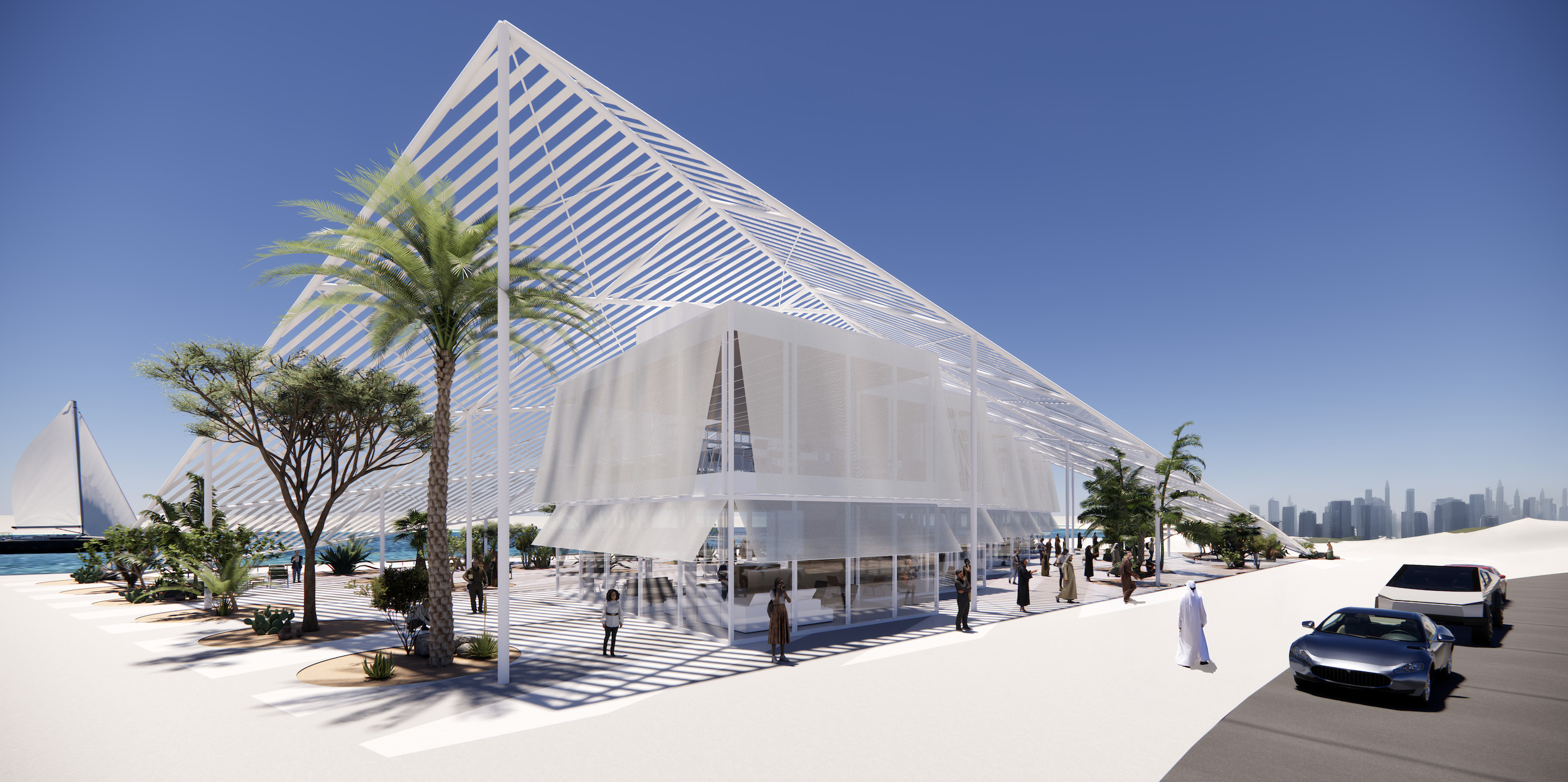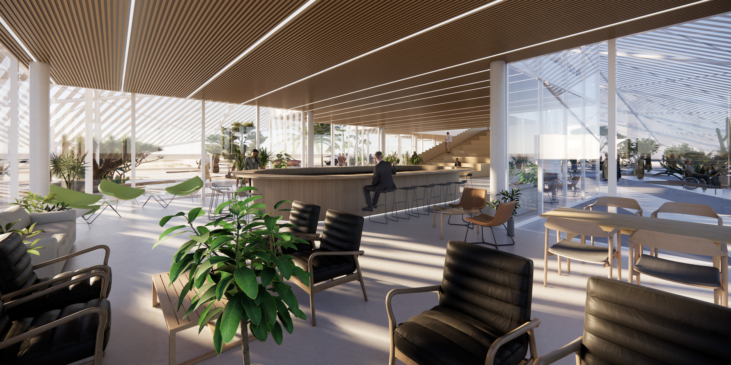 Set along the breathtaking waterfront of Jubail City, this site is part of an ambitious new masterplan to transform the area into a dynamic hub for creativity and collaboration. Conceived as a living habitat, the co-working space blends sleek transparency with lush greenery, framing stunning water views while maintaining a deep respect for the natural environment.